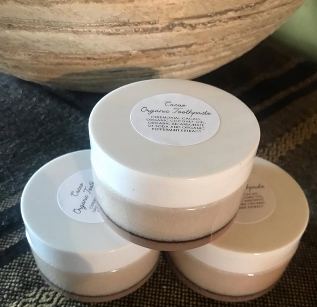100ml jar of ceremonial cacao toothpaste organic coconut oil, bicarbonate of soda and pure peppermint extract