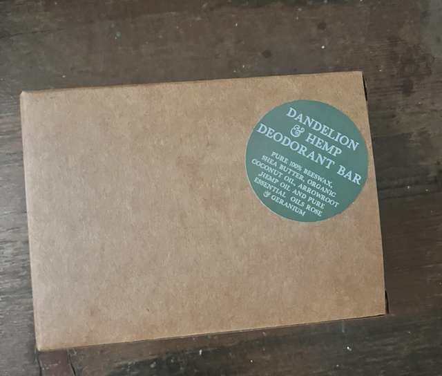 dandelion and hemp oil, Shea butter, 200% beeswax, organic coconut oil, arrowroot and pure essential oil rose and geranium