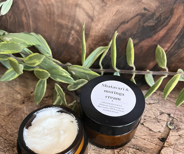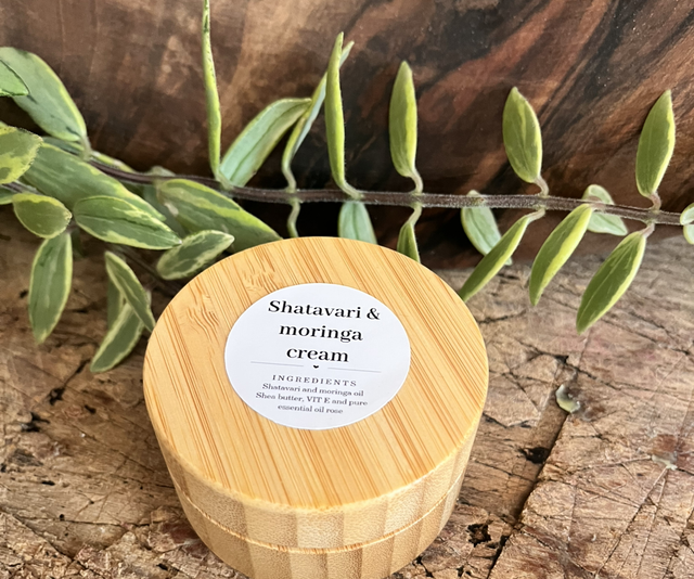 moringa and SHATAVARI cream Shea butter, Vit E and sweet almond almond infused with moringa and SHATAVARI with pure essential oil of rose