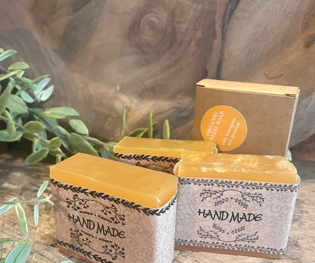 139 gram bar of neem, Seamoss, lemongrass and geranium 💯 organic soap excellent for treating problem skin ie;- eczema, psoriasis, dermatitis and general skin and scalp irritation. Also great to use as a repellant